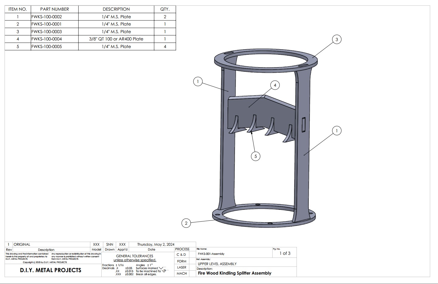 Simple, yet effective tool designed to quickly and efficiently split larger firewood pieces into smaller kindling suitable for starting fires. It consists of a sturdy base plate with mounting holes to hold it in place, raised top and a wedge blade attached.